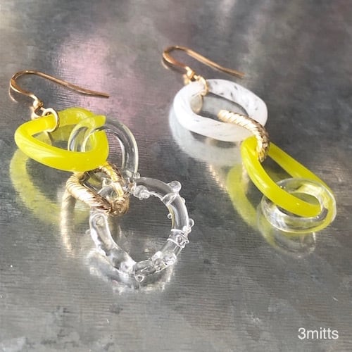今までに定番であったガラスのピアスをより個性的に製作しました。
